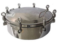 不銹鋼壓力人孔:此產(chǎn)品屬于衛(wèi)生級壓力人孔系列產(chǎn)品的一類,是一種負(fù)壓人孔,一般耐壓達(dá)到0.3MPa,通常主要安裝在乳制品、啤酒、飲料、制藥、生物工程等工業(yè)領(lǐng)域大罐及容器上面。因?yàn)閼?yīng)用部位對壓力的承受力有很高要求,所以對于快開人孔的不銹鋼板的選擇和厚度及快開人孔本身的強(qiáng)度和密封性的要求是技術(shù)的關(guān)鍵所在。
