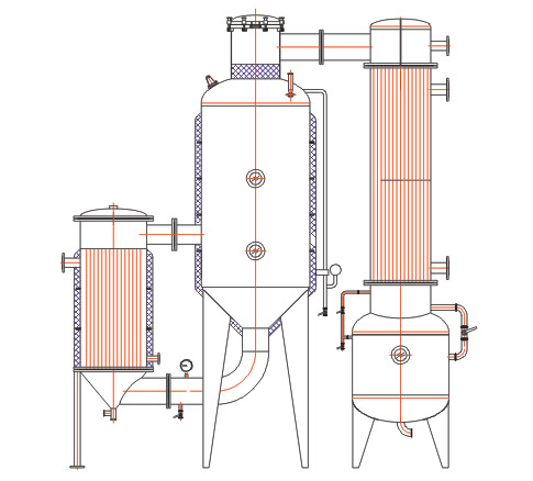 1. 本設(shè)備由加熱器、蒸發(fā)器、冷凝器、貯液罐、消泡器、循環(huán)管等部分組成。