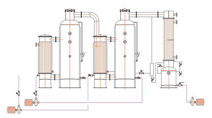5. 采用多效蒸發(fā),二次蒸氣可得到重復(fù)使用,節(jié)能效果顯著,操作方便、安裝簡單。