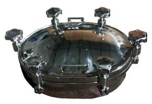 不銹鋼橢圓人孔:此產(chǎn)品屬于衛(wèi)生級壓力人孔系列產(chǎn)品的一類,是一種負(fù)壓人孔,一般耐壓達(dá)到0.3MPa,通常主要安裝在乳制品、啤酒、飲料、制藥、生物工程等工業(yè)領(lǐng)域大罐及容器上面。因?yàn)閼?yīng)用部位對壓力的承受力有很高要求,所以對于快開人孔的不銹鋼板的選擇和厚度及快開人孔本身的強(qiáng)度和密封性的要求是技術(shù)的關(guān)鍵所在。 本產(chǎn)品特點(diǎn)是節(jié)省空間,比較適合罐體直徑較小的場合。
