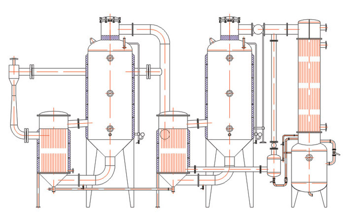 3. 設(shè)備主要由加熱器、蒸汽熱壓泵、分離器、消泡器、冷凝器等組成。